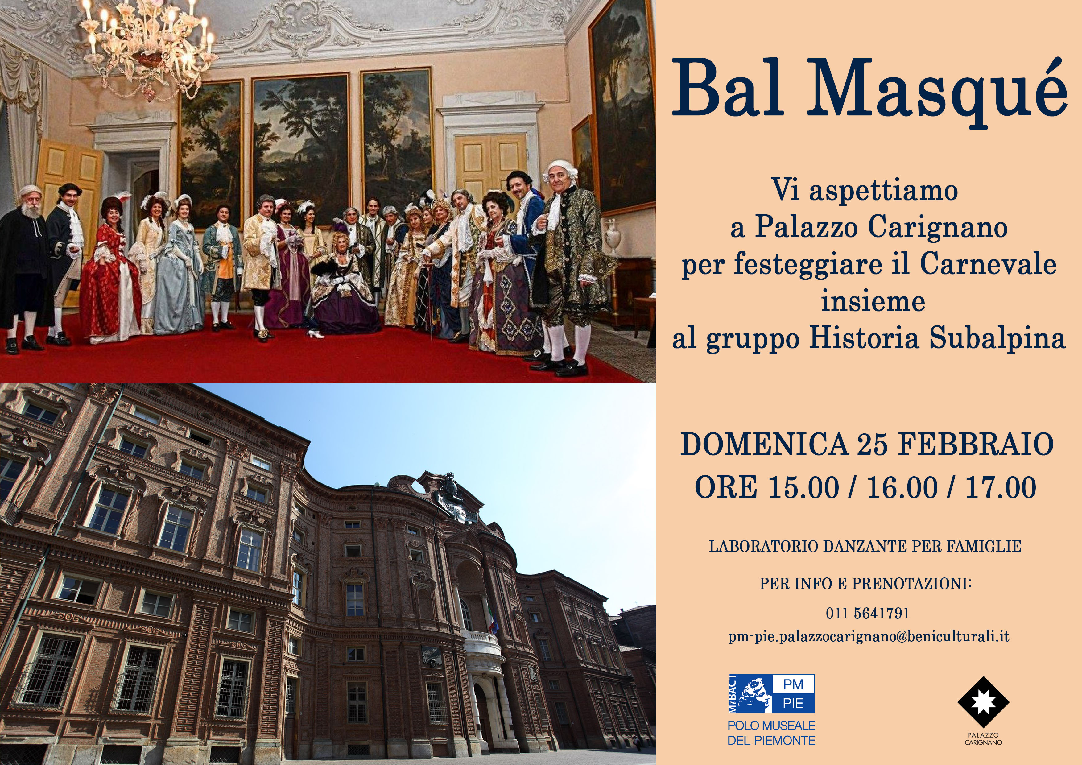 Domenica 25 febbraio, a chiusura del Carnevale, nelle meravigliose sale dorate dell’Appartamento dei Principi di Palazzo Carignano l’Associazione Historia Subalpina darà vita a tre visite guidate teatralizzate, alle ore 15.00, 16.00 e 17.00.