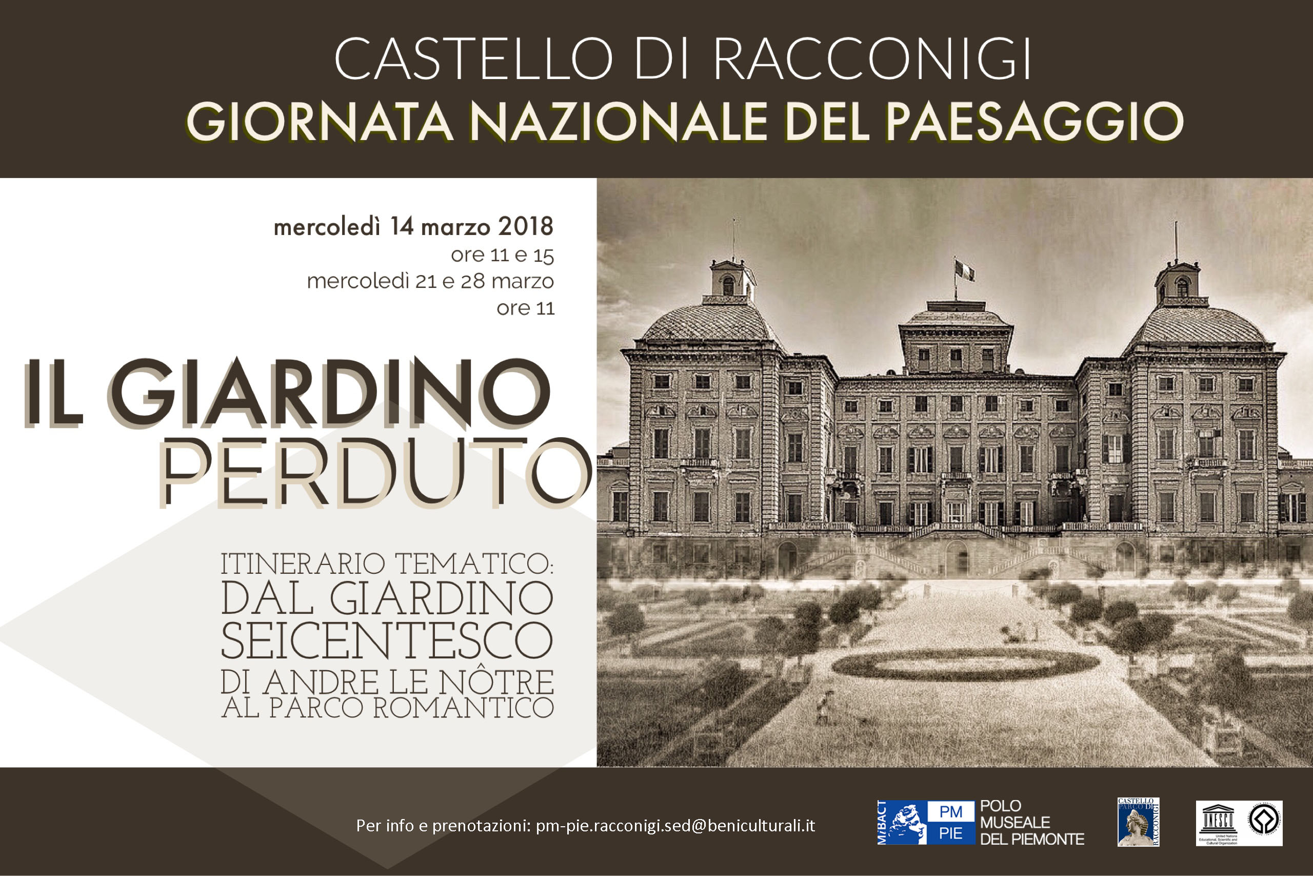 Per informazioni e prenotazioni: pm-pie.racconigi.sed@beniculturali.it