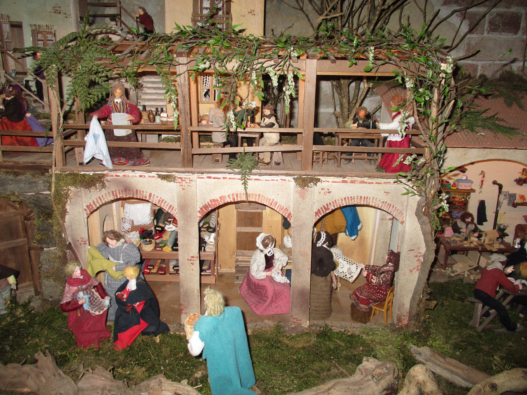 Anna Rosa Nicola, trasporta i visitatori in uno spazio sospeso nel tempo, nel quale minuscoli personaggi popolano botteghe e strade di un paese fiabesco nato dalla sua inesauribile fantasia, descritto nei minimi dettagli.