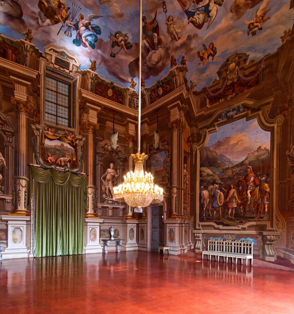Il Salone d’Onore del Castello di Agliè, già denominato Salone da ballo, e ancor prima, Salone d’Arduino, costituisce il cuore della residenza alliadese. Sulle pareti e sulla volta i dipinti eseguiti nel 1665 da Giovan Paolo Recchi e dalla sua bottega raffiguranti i Fasti del re Arduino d’Ivrea, capostipite della dinastia dei San Martino di Agliè.